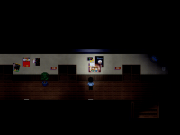 Doch bald spürt er eine seltsame Präsenz und er erinnert sich an die Schul-Legenden über einige Geister, die angeblich im Gebäude gefangen sind. - Links